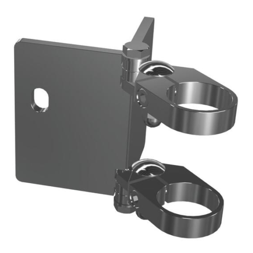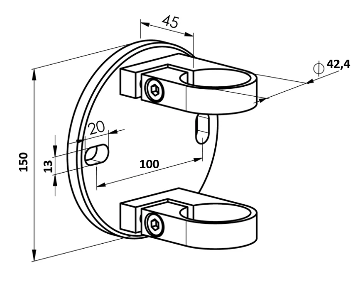 Den sidomonterade runda stolpförankringen är en konstruktionsdetalj som används för att fästa stolpen stadigt. Denna typ av förankring används ofta inom arkitektur- och byggprojekt för att säkerställa räckets stabilitet och säkerhet.