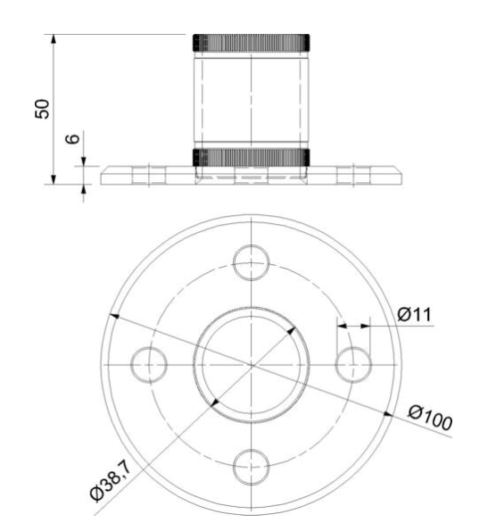Flänsen för toppförankring av räckesstolpar ger stabilt stöd och säkerställer att stolpen sitter stadigt på plats. För förankring finns fyra hål i flänsen som tillsammans med förankringsmaterial möjliggör fastsättning mot underlaget.