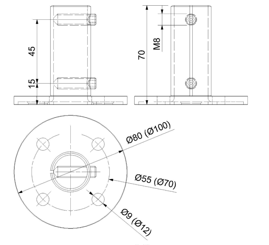 Flänsen för toppförankring av räckesstolpar ger stabilt stöd och säkerställer att stolpen sitter stadigt på plats. För förankring finns fyra hål i flänsen som tillsammans med förankringsmaterial möjliggör fastsättning mot underlaget. denna fläns har gängstift för att sammanfogas med stolpen