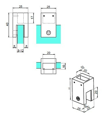 Glasfäste för lodrät stag mot tak 10x20mm