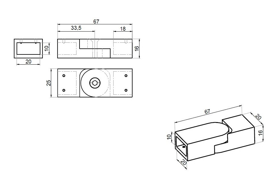 Justerbart vinkelfäste för stag till stag 10x20mm
