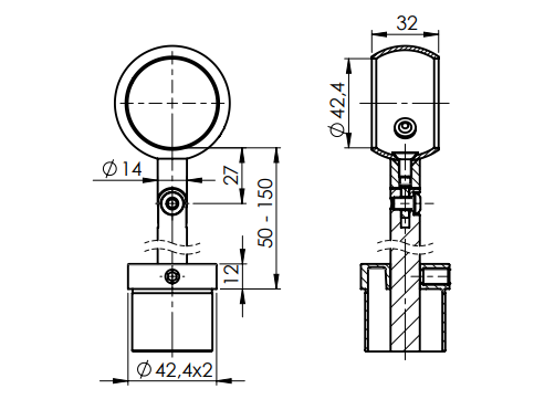 Toppanslutning där handledaren förs igenom ringen. denna produkt är också justerbar.